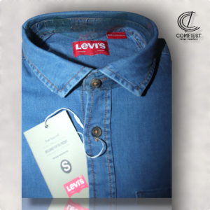 - Design: Classic light-wash denim with a single chest pocket featuring the iconic Levi’s red tag.